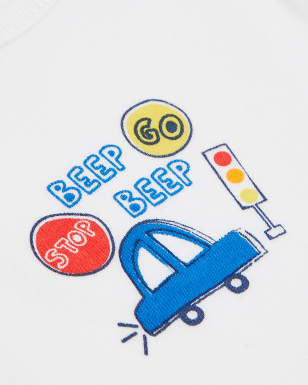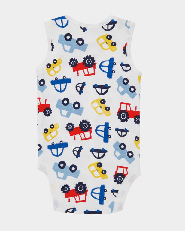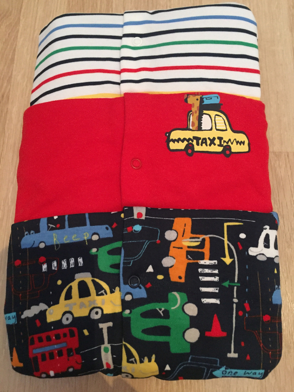 Комплект из 3х слипов Машинки фирмы George, полностью расстегиваются-застегиваются на кнопках . Красный с желтой машинкой на груди + белый с яркими полосками + синий с машинками по всему слипу. Состав 100% хлопок,