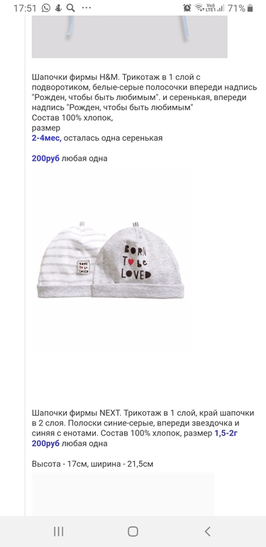 Шапочки фирмы NEXT. Трикотаж в 1 слой, край шапочки в 2 слоя. Полоски синие-серые, впереди звездочка и синяя с енотами. Состав 100% хлопок, размер 1,5-2г 200руб любая одна