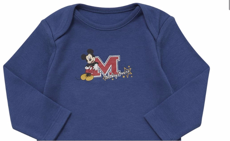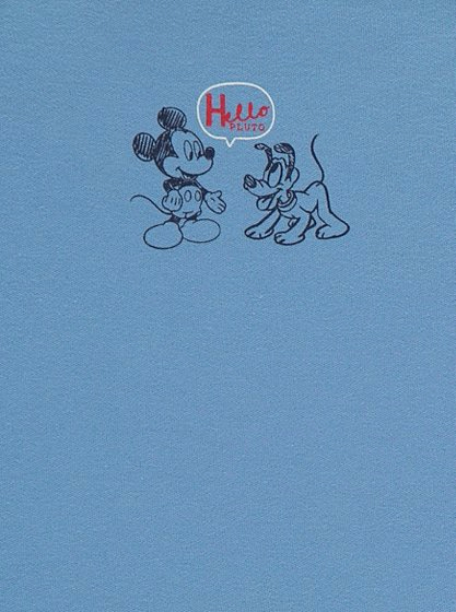 Комбинезончик флисовый Микки Маус и Плуто фирмы George. Синий с буквами, впереди аппликация Микки Маус и собачка Плуто, впереди вышита надпись " Мое первое Рождество" застегивается на кнопки сверху до низа.