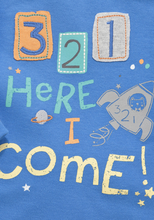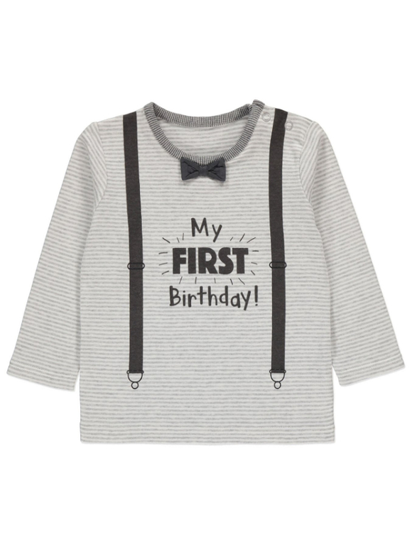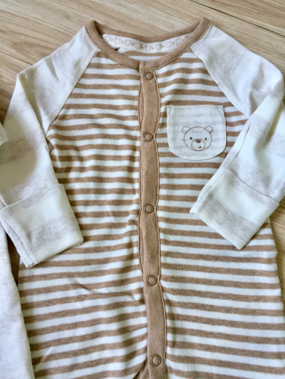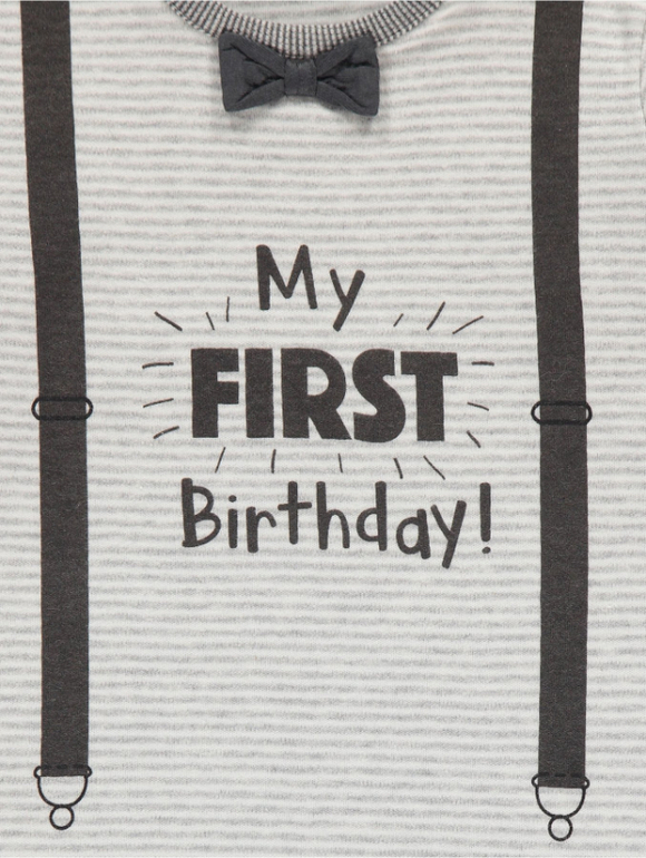 Комбинезончик флисовый "Я родился в 2019 году!" фирмы George. Полосатый бело-серый застегивается на кнопки сверху до низа. Впереди вышиты звездочки, лучики и надпись "Я родился в 2019 году!" Состав 100% мягенький полиэстер.