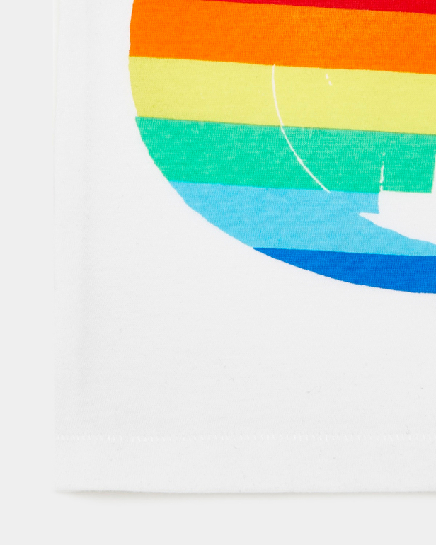 Футболка-поло фирмы Minoti . Белая с яркими полосками, на груди вышивка рыбка, застежка 3 пуговички. Состав 100% хлопок.