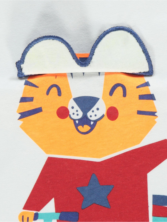 4. Боди с коротким рукавом фирмы F&F. Белый с синей отделкой и яркой картинкой Лев . 3-6мес(62-68),250руб