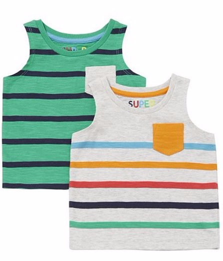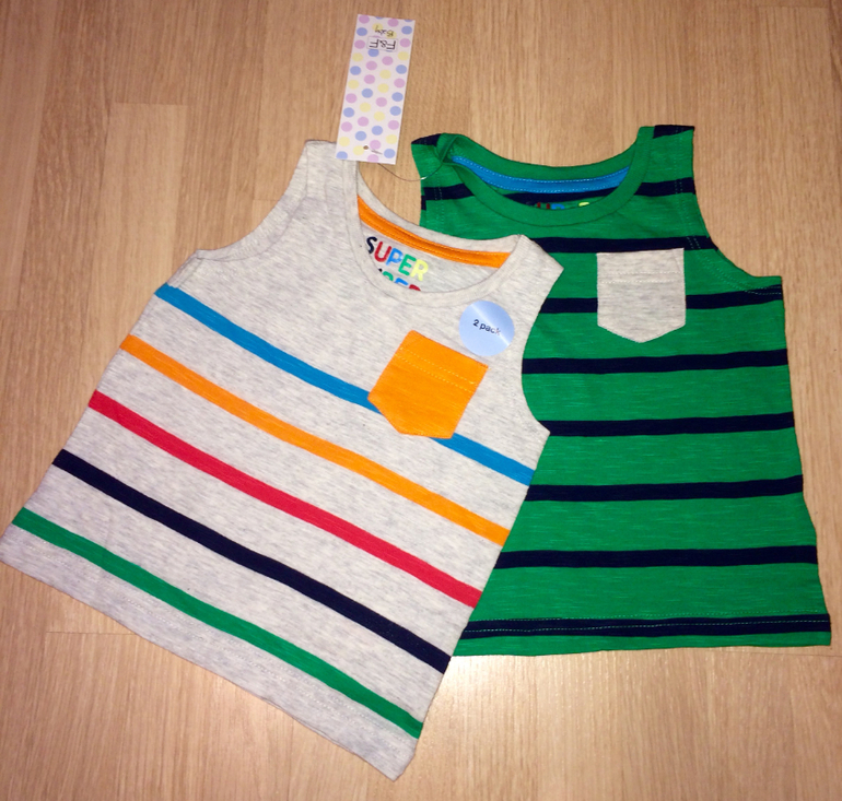 Маечки фирмы F&F. Полоска синяя-зеленая с кармашком на груди + серая с яркими полосками и кармашком на груди. Состав 100% хлопок,
