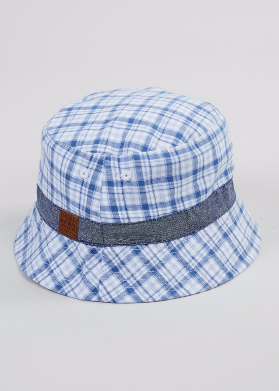 Панамка фирмы Matalan, голубая-белая клетка, джинсовая отделка, эмблема. Состав 100% хлопок.