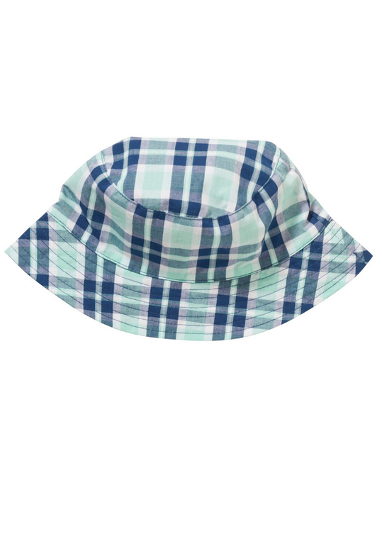 Панамка двухсторонняя фирмы F&F, голубая-синяя-белая клетка, с другой стороны темно-синяя. Можно носить на об стороны.