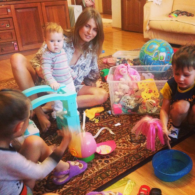 пока были в Саратове, пошли к моей давней близкой подруге. там дети, им по 4 годика. Ника так классно с ними играла, пока мамы пили вино на кухне