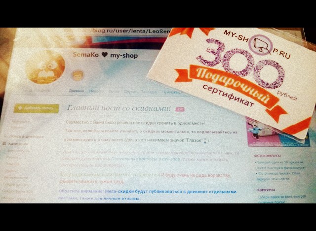 Ой, чуть не забыла про приз... Сертификат на 300 рублей в интернет-магазине my-shop.ru