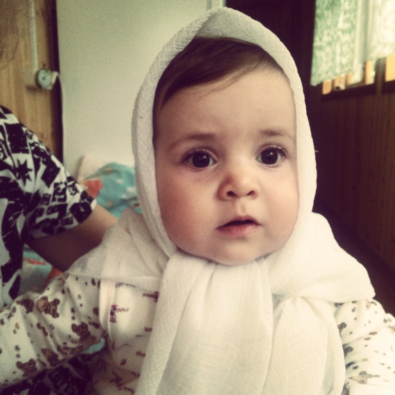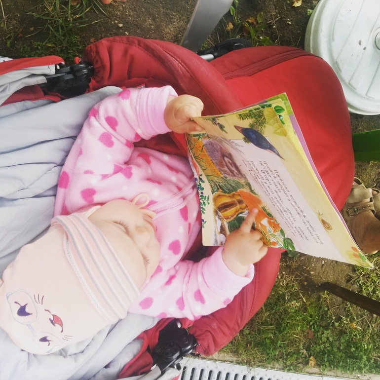 Ходить так сама пока и не стала, просит ручку. Боиться ещё сама. Зато за ручку прям бежит) ))
