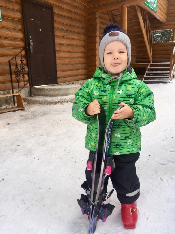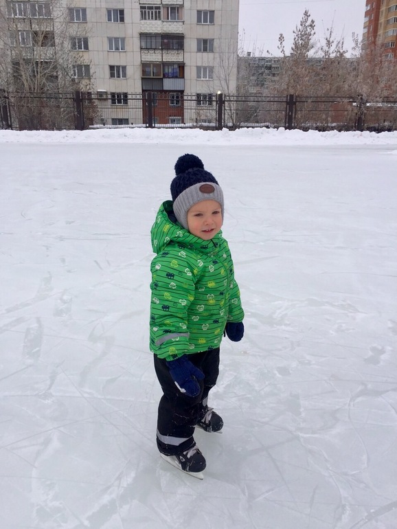 Этой зимой пробовали кататься на коньках и на горных лыжах. На коньках Саша может стоять, немного ходить по льду, но особого удовольствия от процесса не испытывает. Хватает на 5-10 минут, а потом начинает ползать. Горные лыжи ему больше понравились. И у него неплохо получается. Еще стал один кататься на тюбинге, ему прям очень нравится, чувствует себя большим.