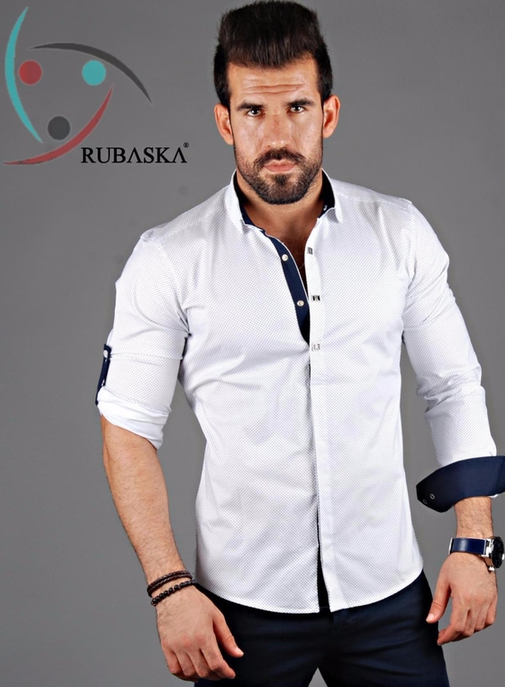 Классичесскаяпо груди 58. Боюсьмаловата( А такая? Или чисто белая с синими манжетами?