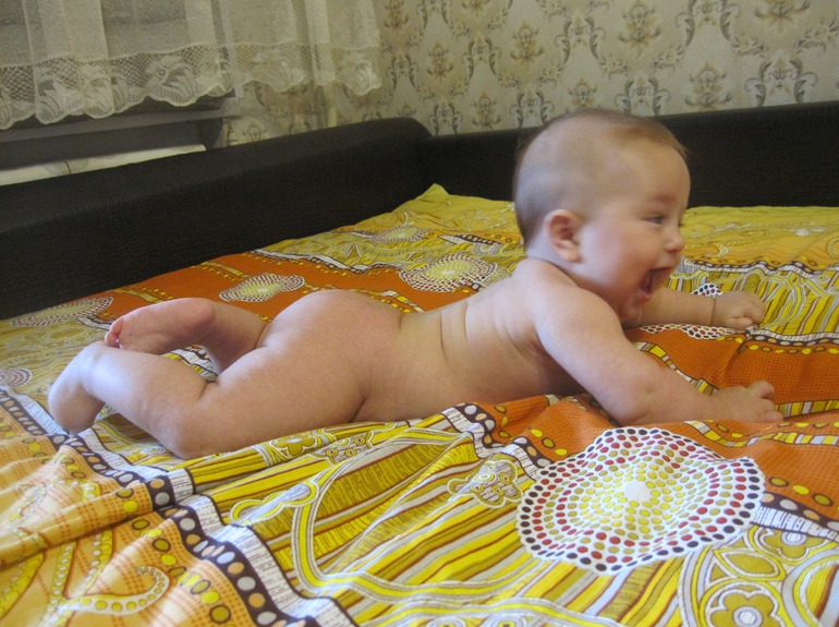 Так вроде и всё, на четвереньках пока еще не стоит, только пытается под себя ноги подогнуть!!! Сажаю его часто в ходунки, очень выручает эта вещь сейчас... можно даже помыться не укладывая его спать, поставить в проёме с открытой дверью и мыться, так классно)) А ещё тут сын мой старший немного приболел кашлял.. и когда он кашлял у Андрюши начинается истерика-ржачная остановиться не может, я один раз сына 15ть минут заставляла кашлять... Андрюха пищал визжал смеялся так сильно ногами дрыгал слюни пускал, как же ему понравилось... когда чихала я -тоже смеялся)))