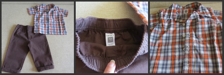 5. Костюм фирмы Carters, размер 12 мес. Состав 100% хлопок, рубашки тонкий хлопок, штаны плотный хлопок. Цена 300 руб.