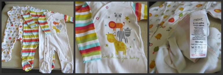 1. Комплект из трёх слипов фирмы Next. 100% хлопок. До 12 мес., рост 80 см. 500 руб Продано!