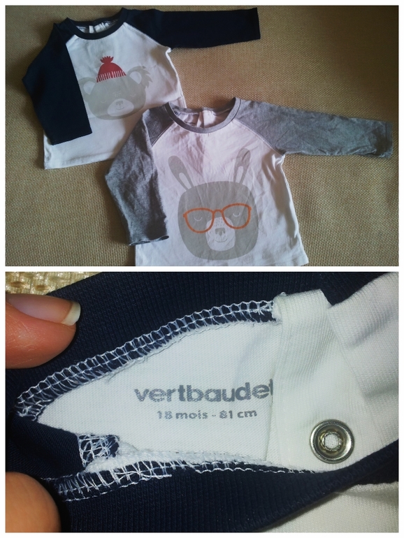 1. Комплект из 2 маек фирмы Vertbaudet (французкая фирма). 100% хлопок. Пишут 12-18 мес., рост 81 см. Но французы маломерят! До полутора точно не доходить никак :) 200 руб.