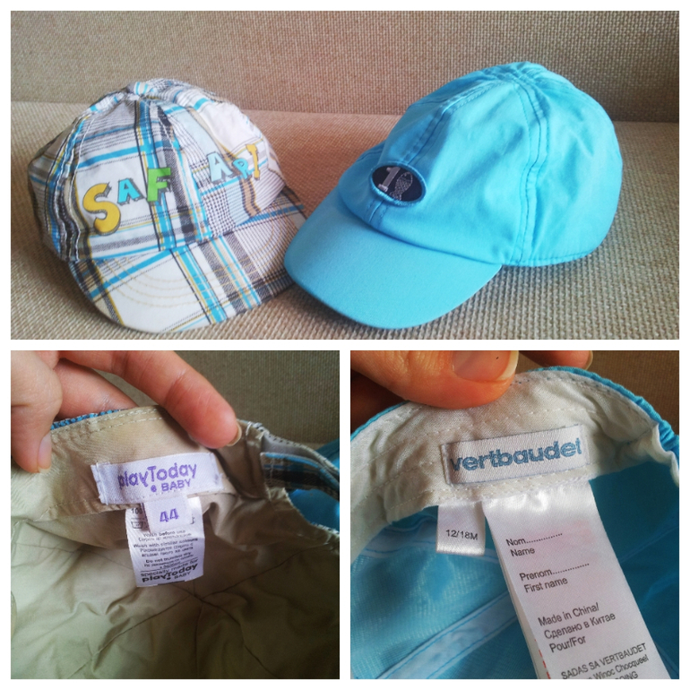 12. Кепки. Голубая на резинке. В клетку регулируется липучкой. Каждая по 100 руб.