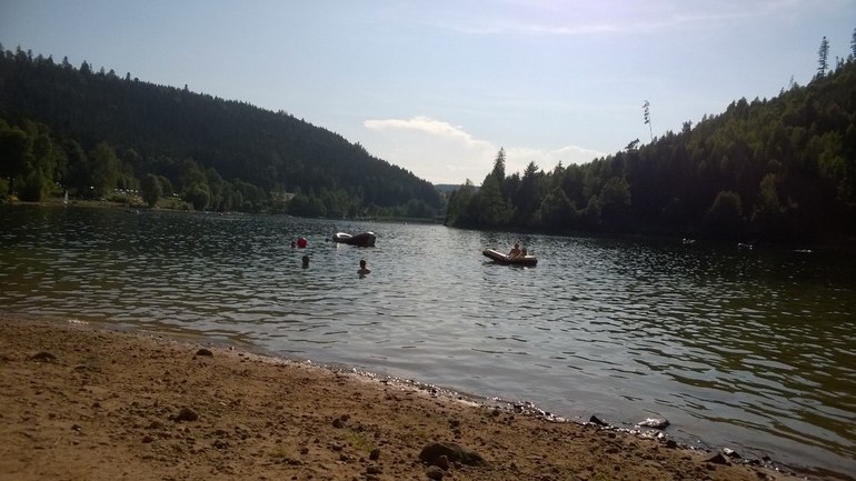 У нас уже неделю жара страшная... вчера доходило аж до 39 в тени. дома находиться невозможно, поэтому собрали вещички, да поехали к кузине мужа в Шварцвальд на озеро)