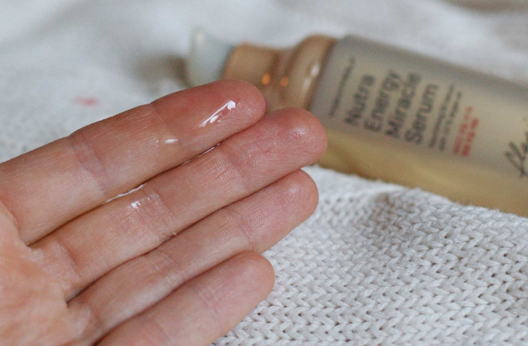 Упакована она во флакончик с дозатором, что очень удобно. Сама жидкость напоминает жидкое масло (там действительно с составе 10% масла арганы). Пахнет лимоном и пихтой. Запах, на мой взгляд, очень приятный. При нанесении - прямо как масло. Кожа блестит. Впитывается через полчаса примерно, и блеск исчезает. Советую все же использовать сыворотку вечером (в связи с ее маслянистостью).