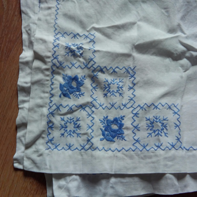 1. Размер где-то метр на метр. Состояние идеальное. ХБ. Экв. 2000