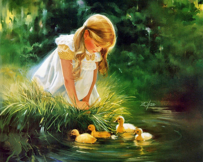 Внимательно рассматривали Золана, больше всего нам приглянулось вот это произведение. Эля показала на утят и сказала"га га га".