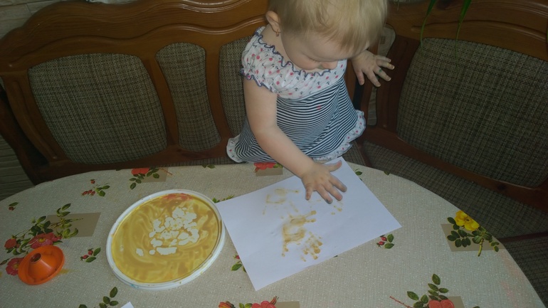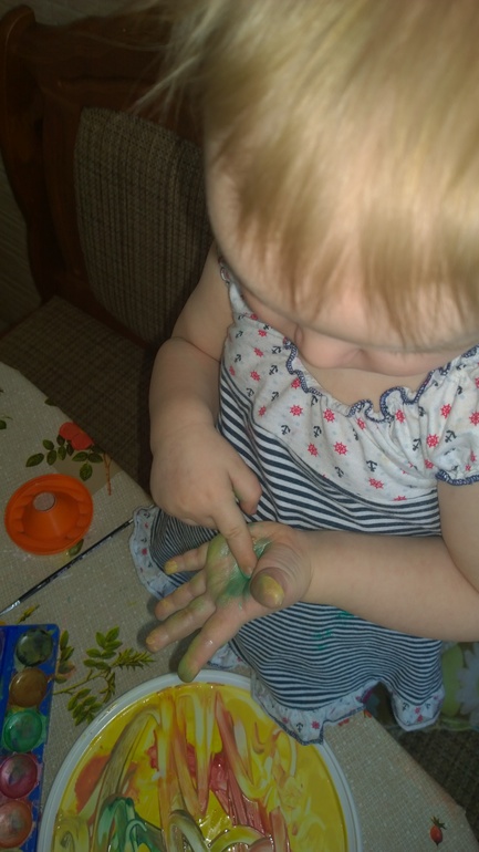 Нарисовали веселую мордочку, дальше полет фантазии Эльви и наши любимые рисовалки на ручках(у нас так любое рисование заканчивается) и ладошки