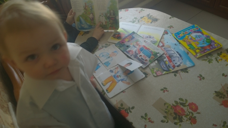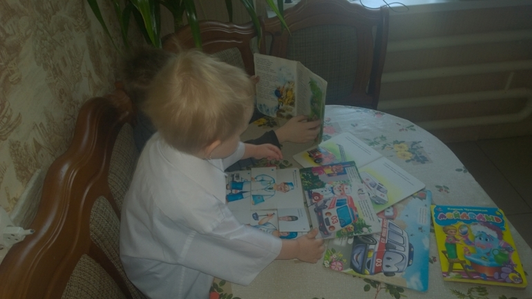 Собрали пазл-книгу с врачем, посмотрели как выглядит, во что одет.Прочитали книгу "Айболит"
