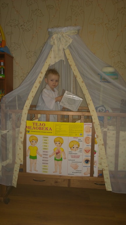 С плакатом мы уже познакомились давно, повесили его несколько дней назад, интерес проявляем до сих пор. Эльчик подходит к нему и показывает части тела на нем и у себя - так мило смотриться!