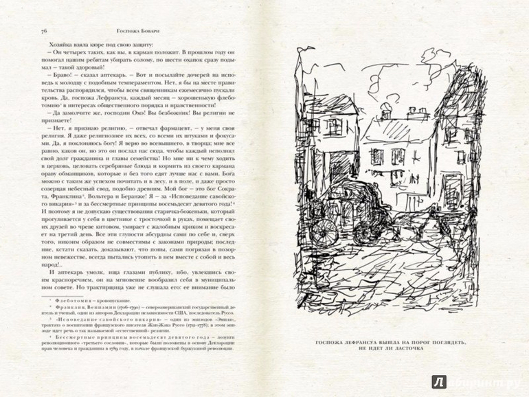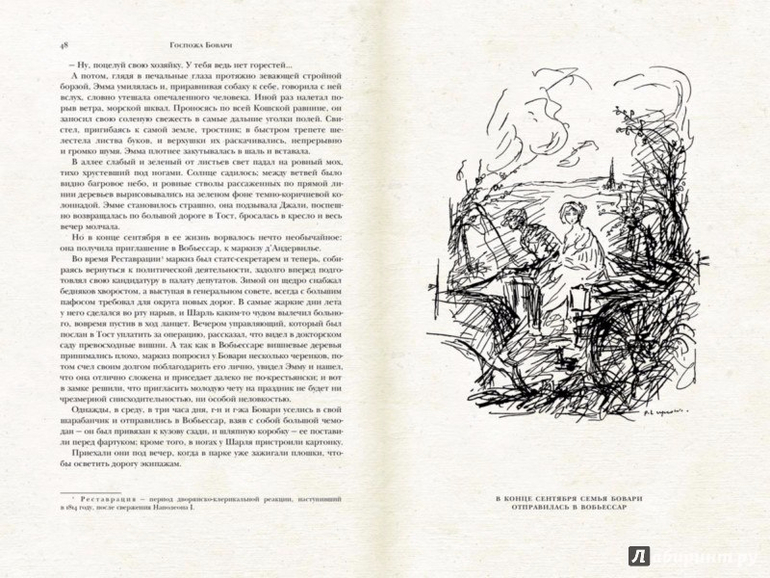 "Я удивляюсь, что в наши дни, в наш просвещенный век есть еще люди, упорно возбраняющие совершенно безобидный вид умственного отдохновения. Театр благотворно действует на моральное, а иногда и на физическое состояние". Однако не все услаждаются жизнью разума, и подобный отдых им чужд. Совсем как главной героине романа "Госпожа Бовари" - Эмме. Она лишь предается многочисленным грезам о нарядных платьях и беспечности. Слишком поздно Эмма понимает, к чему приведут ее мечты о сказочной жизни.