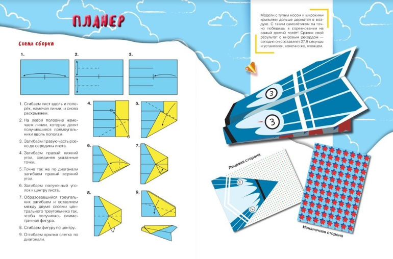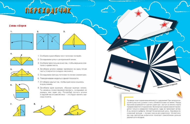 Эта книга - настоящий набор для оригами! В ней ты найдёшь подробные схемы и листы для складывания 8 самых лёгких, красивых и отлично летающих самолётов. Ты узнаешь много интересного об искусстве оригами, о необычных самолётах, а также получишь практические советы по техникам складывания и броска, которые помогут выиграть любые аэрогонки!