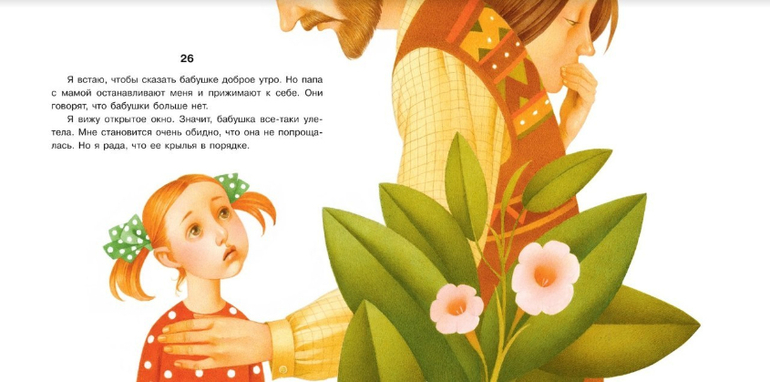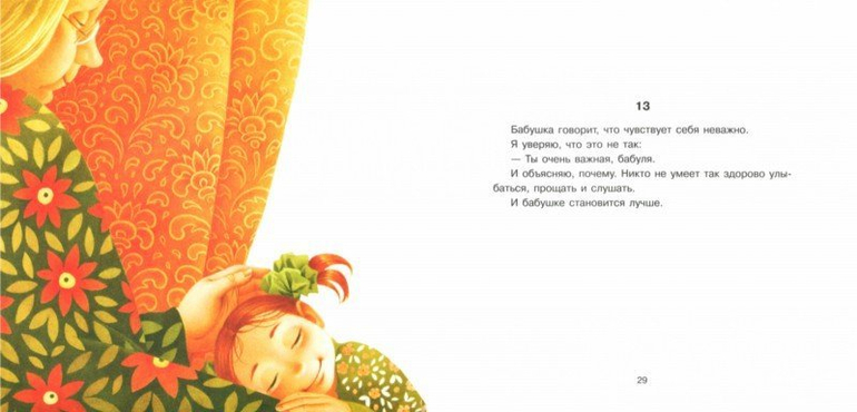 Все бабушки умеют летать. Я знаю, я видела. Бабушки летают не высоко, не низко. Так, чтобы можно было погладить своих внуков по голове. Бабушки не улетают на юг, как птицы. Они всегда остаются дома. Бабушки никогда не обижаются, их можно только огорчить. Когда бабушки расстроены, они не могут летать, только сидят тихонько. Говорят, бабушки могут улетать навсегда. Поэтому бабушек надо беречь. У меня тоже была бабушка. И она умела летать.