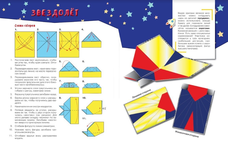 Эта книга - настоящий набор для оригами! В ней ты найдёшь подробные схемы и листы для складывания 8 самых лёгких, красивых и отлично летающих космических кораблей. Ты узнаешь много интересного об искусстве оригами, о шаттлах, ракетах и беспилотниках, а также получишь практические советы по техникам складывания и броска, которые помогут выиграть любые аэрогонки.