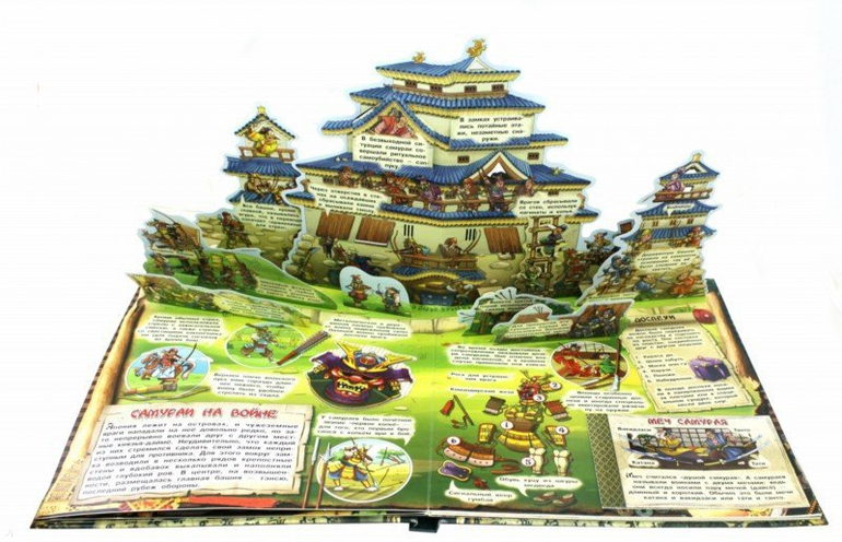 Книга с окошками, подвижными и объемными элементами расскажет о храбрых японских воинах. Ребенок познакомится с боевыми искусствами самураев, побывает в замке самурая, поучаствует в осаде крепости.