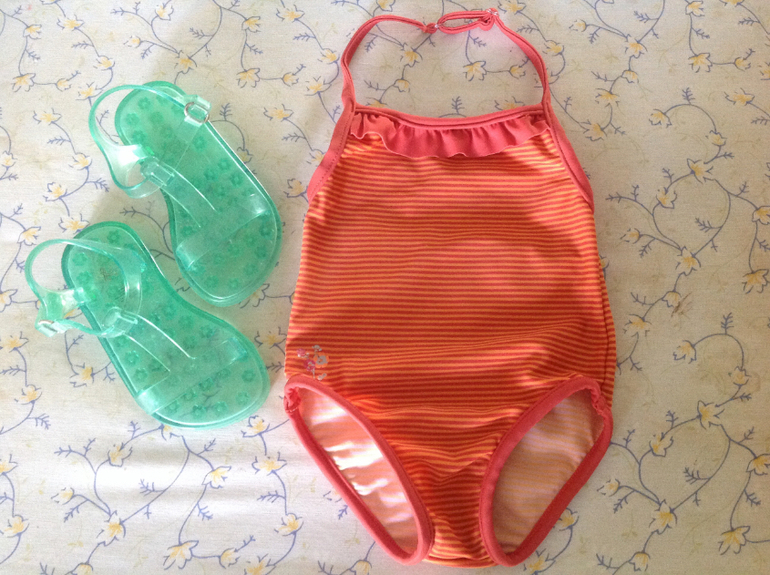 Продаю купальник на год- полтора пр-ва Франция, в отличном состоянии. 300 р. И пляжки Gap размер 7, по стельке 14 см красивого цвета изумруд. 200 р.