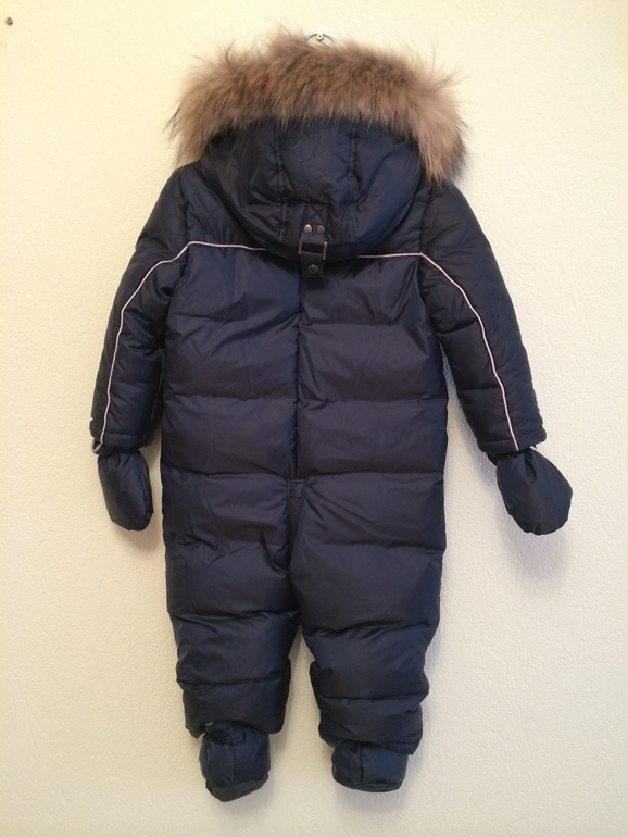 Новый комбинезон для мальчика итальянской фирмы Borelli, цвет темно-синий, наполнитель пух/перо 80/20. Шикарная меховая опушка (мех енота). Размеры в наличии 12, 18, 24, 36 мес. 8000р.
