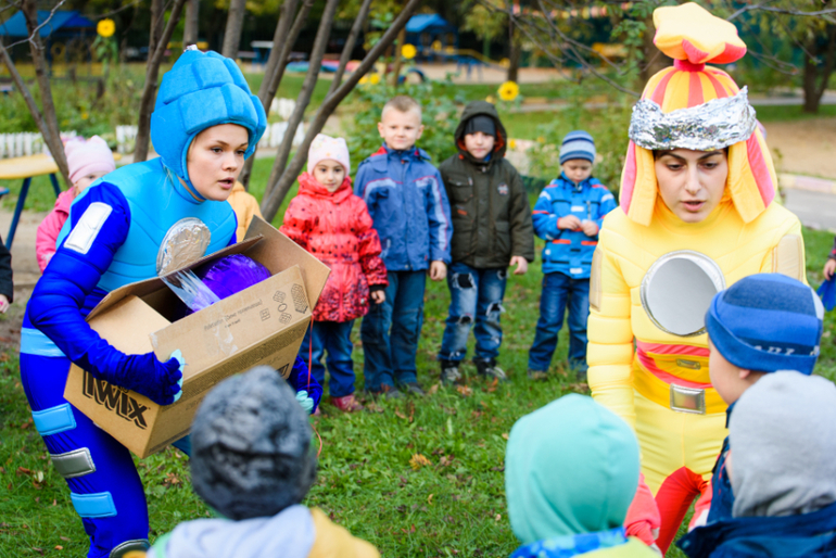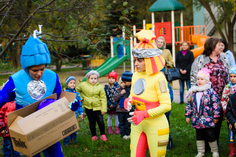 Дима, все классно. Но так просится по-больше эмоций отдельных деток... с их высоты глаз. Ведь праздник детских и цель показать его глазами детей. Ну и показать их восторг, гримасы. Самих фиксиков можно гораздо меньше фоткать. Они не так интересны. Иначе выходит - дети в тени, а они - звезды. Мне кажется нужно приседать и снизу фотографировать все. И конечно главные герои здесь дети. А если день рождения чей-то - то должны быть кадры с восторгом именниника.