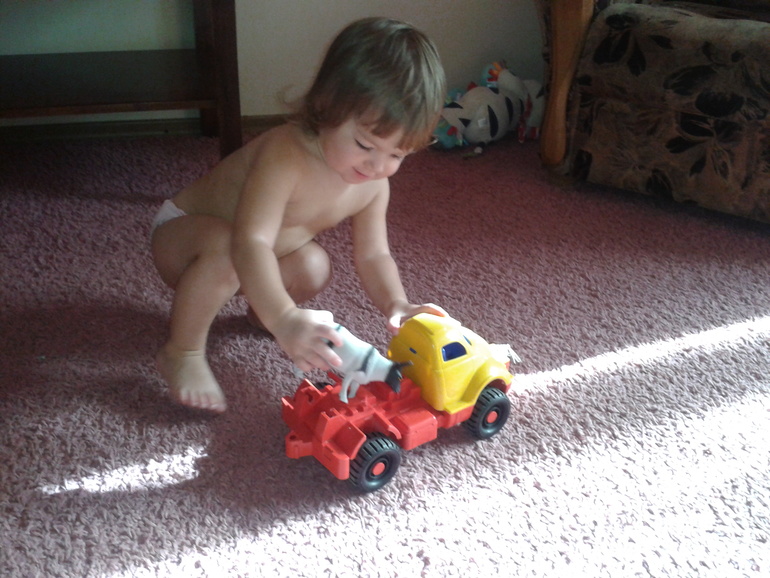 После прогулки и дневного сна рассматривали карточки с животными и играли в лото ставя фигурки животных на карточки, дочка справилась без труда (мы вообще любим разные лотошки, играем в них где-то с 1и3 года).
