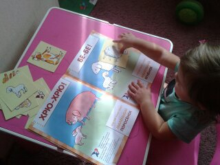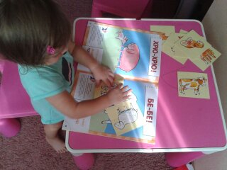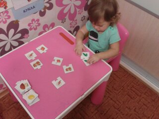 Поиграли в парочки, ложу перед дочкой 6-8 картинок, а она выбирает нужные.