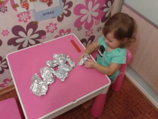 После завтрака я вручила Танюше сюрпризики завернутые в фольгу, хотя фигурки были не новыми дочь получала огромное удовольствие разворачивая их. Обсудили кто большой, кто маленький рассортировали маме больших Тане маленьких.