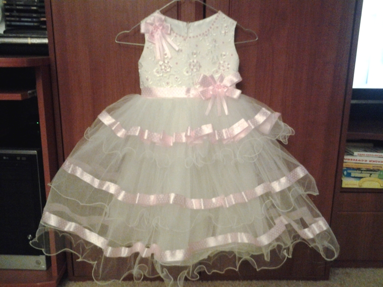 Девочки, продам платье на девочку рост 104. Одевали пару раз на праздник. Платье очень красивое, вырез расшит камушками и жемчужинами, поясок тоже из жемчужин. К нему в комплект болеро. Продам за 800 руб. ( покупала за 1 700 руб).