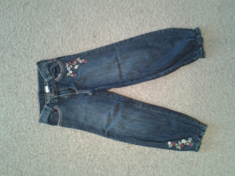 1. Джинсы Gymboree, рост 5Т, ОТ 30 регулируется, длина внешнего шва 65, шаговый 48, цена 500 руб.