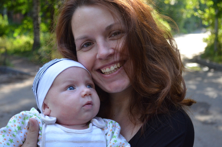 Такая счастливая мамочка!!!! А Лёвушка на что-то засмотрелся. ))))) Голубоглазый, да? )))