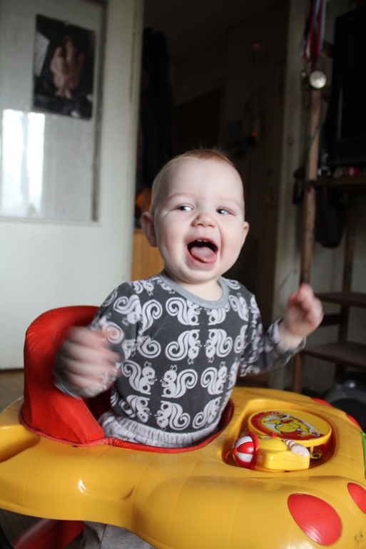 Я думаю, развиваемся мы нормально. Не ходим самостоятельно, но очень любим ходить за ручку, точнее за палец,а еще точнее - за большой палец. причем, он сам выбирает, когда ему протягиваешь руку - только большой палец. Сам - боится, хотя Может, палец ему для подстраховки что ли....Очень улыбчивый и любящий других детей - малыш. Мы с мужем его 2 раза в неделю на пару часов водим к знакомой, у которой девочка 1 год и 4 мес, я сначала очень волновалась оставлять, а мне потом знакомая говорит, что к концу второго часа - они уже обнимались с этой девочкой и она плакала, когда папа его забирал.... Очень не равнодушен ко всему волосистому и шерстяному, собака от него убегает, потому что он хватает ее за шерсть и тянет со всей силой, а иногда и за бороду, и за усы, в общем, за самое больное. У нас с папой тоже повыдирал волосы, папа даже не выдержал и побрился на лысо, теперь Лева стучит его по макушке и требует обратно волосы....А я показывала сегодня ему закат, на руки взяла, думала - так красииииво, красное солнце, а он - хвать меня за волосы - вот и вся красота.... Очень не любит одеваться и менять подгузник, это вообще стало огромной проблемой, то убегает на четвереньках, то изгибается так, что одной не справиться. Я уже упариваюсь менять ему, иногда кое как залиплю, так он накакает или написает и все - мимо. В общем, не нашла пока уловки на этот счет.... Кусается. Щиплется. Царапается. Тычет пальцами в глаза и затыкает нос, "...а в остальном, прекрасная Маркиза, все хорошо, все хорошо"...Ест хорошо (ТТТ)....Маленькие кусочки боюсь ему давать еще, у него только передние зубы и сверху и снизу, жевать нечем, ну вроде наедается... Непередаваемые звуки восторга, горя и поет!!! Он поет "няняня" и даже можно вычленить какой-то мотив. Вот такой мой Зайка.
