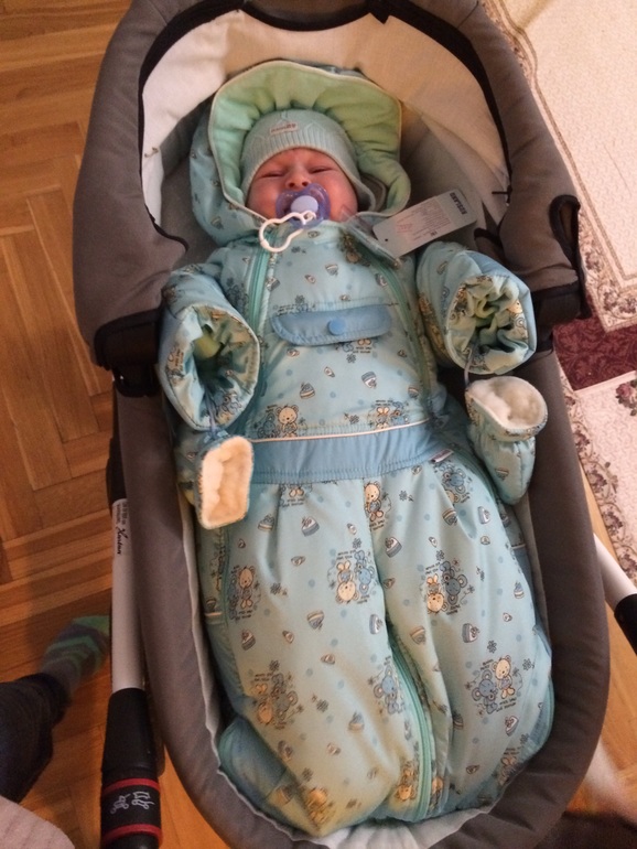 Комбинезон зимний покупать не вижу смысла, т.к в конверте и комбезе ребенок сварится.