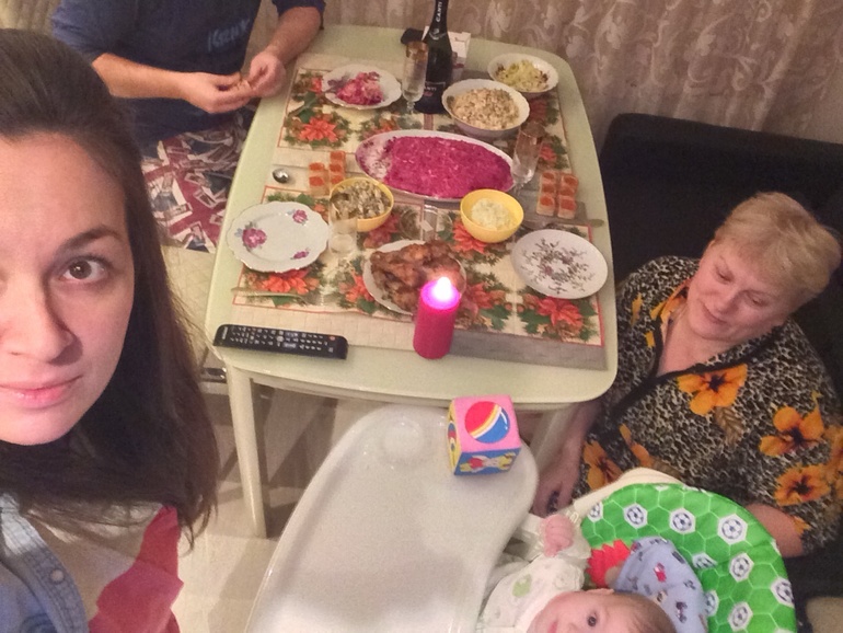 Прошлый нг я отмечала с пузиком, бутылочкой безалкогольного пива и коробкой клубничного баскин роббинс))) в этом году с нами был Артем, бабушка и несколько салатиков, которые она приготовила.