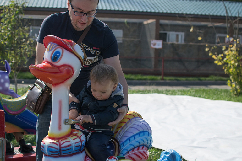 А вообще у нас настолько приевшиеся дети сейчас, что моим были пофиг животные. Ну Артем, понятно, мелкий еще. Ему бы носится по траве! И есть камни. А, он задирался к макаке! Сам как макака)) А вот дочка смотрела с абсолютным спокойствием. Больше порадовали их всякие карусельки и качельки. Детской площадки как таковой там нет, в отличии от Воробьев;. Есть кафе, сувениры.