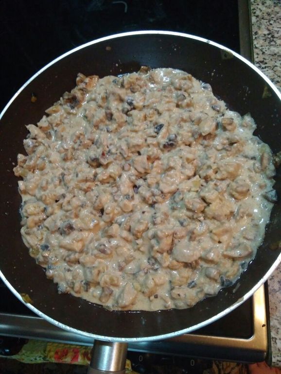 Добавляем соль и специи По вкусу....затем 3-4 ст. л сметаны и столько же ложек молока
