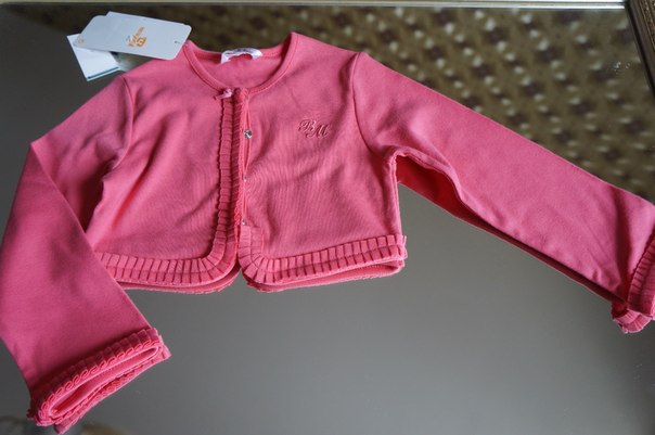 3) Болерушка хлопок , красивый персиково-лососевый цвет . 18 мес! Вишитая эмблемка