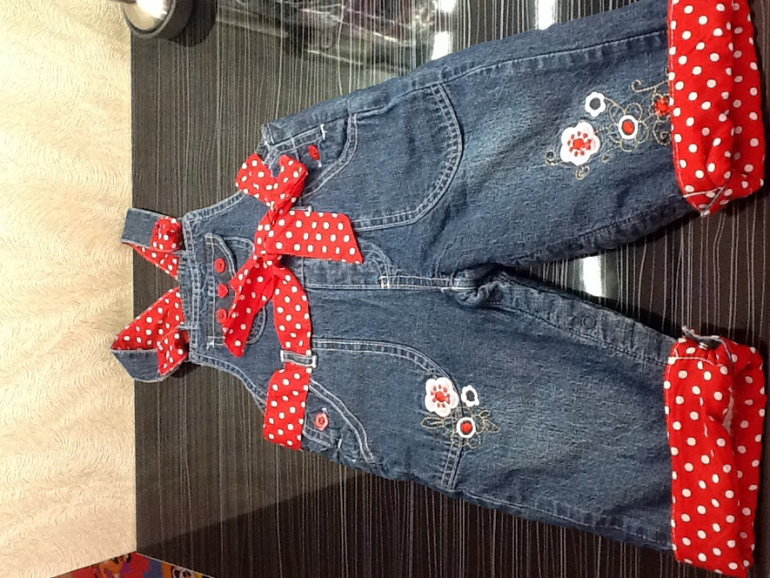 Джинсовый комбезик 9-12 мес, большемерит немного