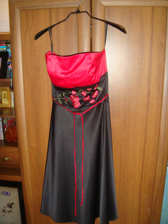 Нарядное платье в отличном состоянии (надевалось 2 раза). Отлично подойдет и для Новогоднего вечера.На лифе красивая вышивка. Ткань немного тянется.Талия немного завышена.Цвет красно-черный.