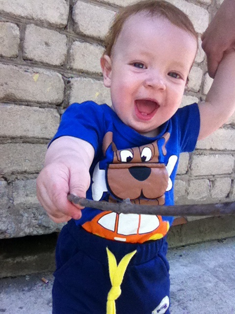 С детками на улице особо на играет. Минуты 2постоит осмотрит с ног до головы, потрогает и уходит. Игрушки если забирают отдает без скандалов или сам может отдать им. И идет собирать палки/веточки. Больше интересуют взрослые детки, нежели сверстники.