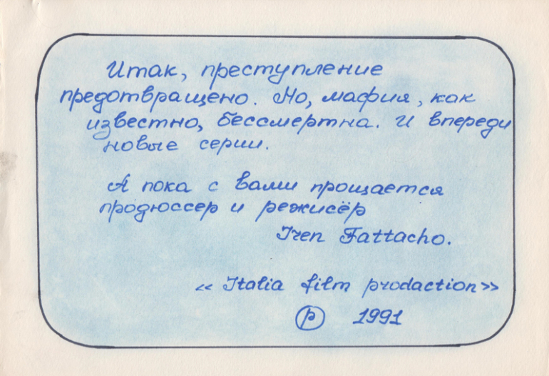 Хранила-хранила, но решила сделать скан и выбросить. С девчонками общение почему-то прекратилось полностью. Ребята с фото - один был моим парнем (расстались после первого курса), второй - муж одной из девчонок (развелись), вот как-то так. Но все зато остались в этой придуманной истории. Создательницу "фильма" встречала несколько раз после института, очень редко в Одноклассниках можем пересечься. Как-то так странно получилось. Хотя дружили вплоть до выпуска.